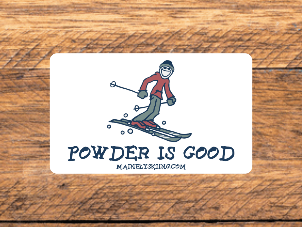 As all skiers know, powder is good! Show off your Maine skier pride with this fun sticker. This vinyl sticker is perfect for the car, water bottle, phone case, laptop, helmet, and anywhere else you want to display your sticker!